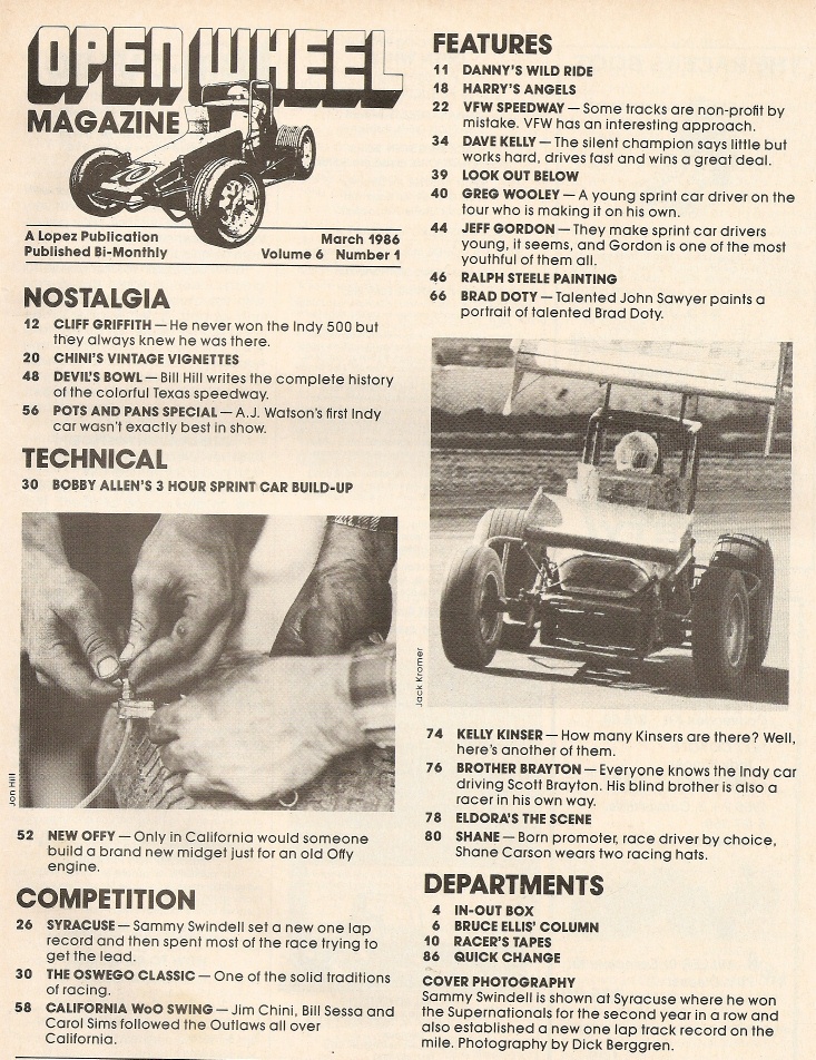 Reviews OPEN WHEEL 1986 MAR - SAM SWINDELL, DAVE KELLY, GREG BRAYTON, KELLY KINSER