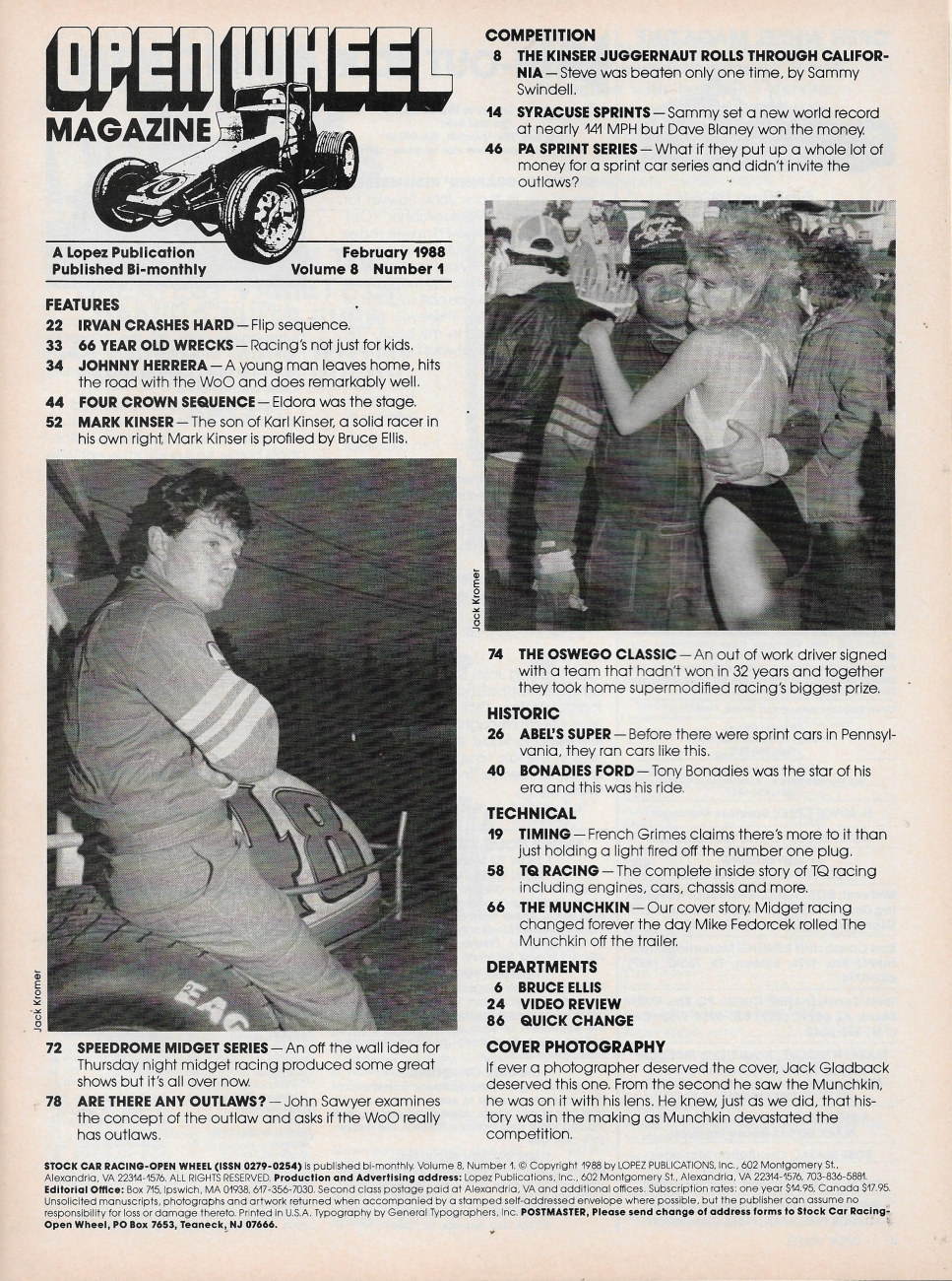 Reviews OPEN WHEEL 1988 FEB - THE MUNCHKIN, SYRACUSE SPRINTS, TQ RACING