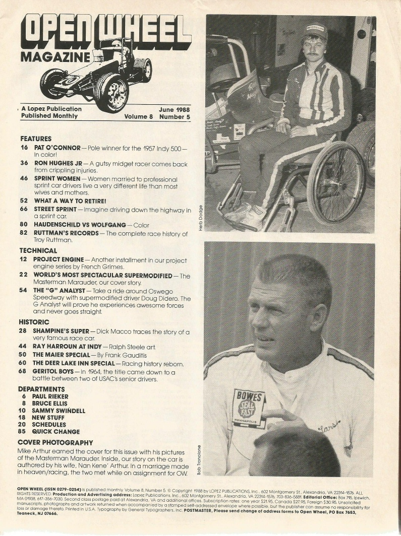 Reviews OPEN WHEEL 1988 JUNE - PAT O?CONNOR, HUGHES, RUTTMAN, GERITOL BOYS