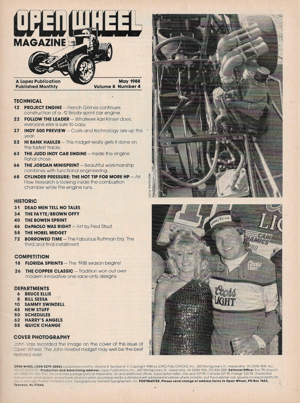 OPEN WHEEL 1988 MAY - FIND MORE HP, JUDD INDY CAR ENGINE, JOHN HOBEL