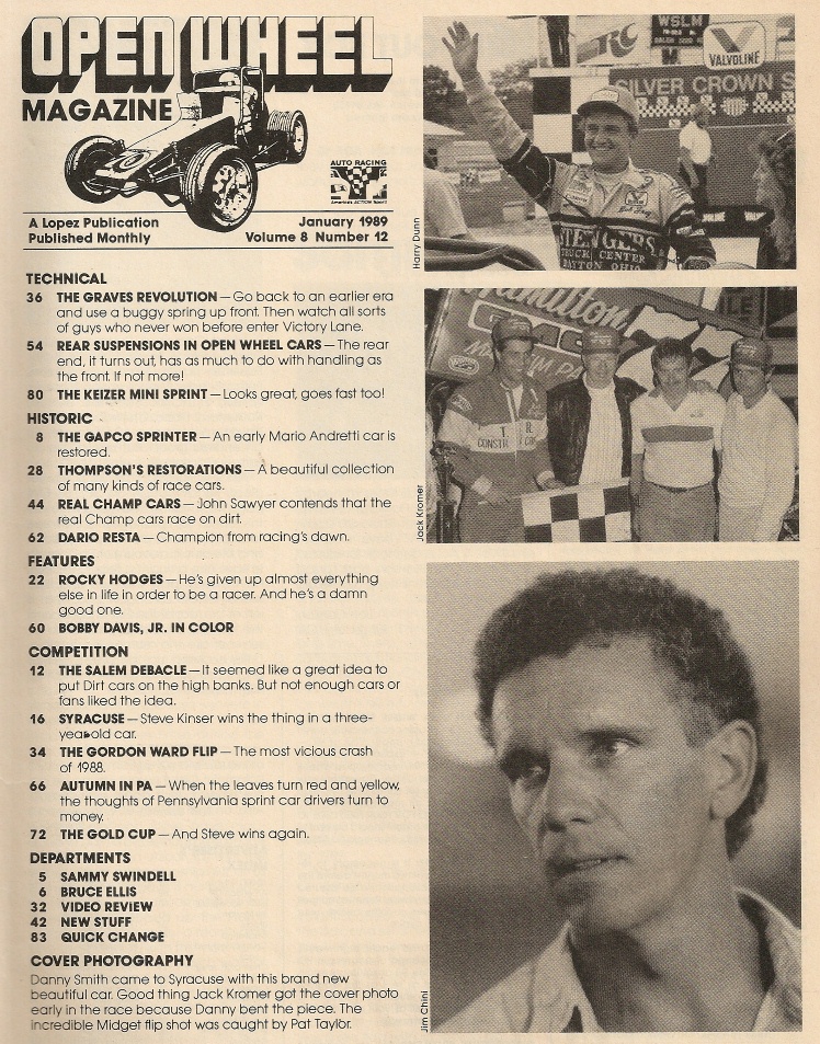Reviews OPEN WHEEL 1989 JAN - JOHN SAWYER, GAPCO SPRINTER, JACK THOMPSON COLLECTION