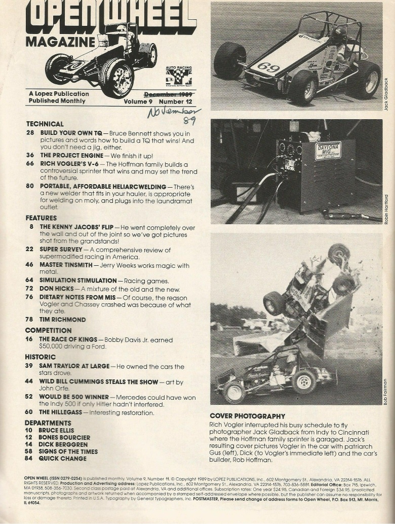 Reviews OPEN WHEEL 1989 NOV - BUILD A TQ, PROJECT ENGINE, VOLGER?S V-6, DON HICKS