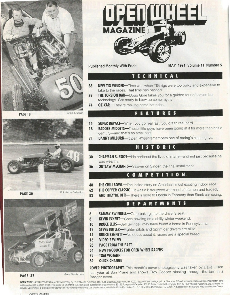 Reviews OPEN WHEEL 1991 MAY - OZ-CAR, DANNY MILBURN, ROOT, SINGER, CHILI BOWL, COPPER