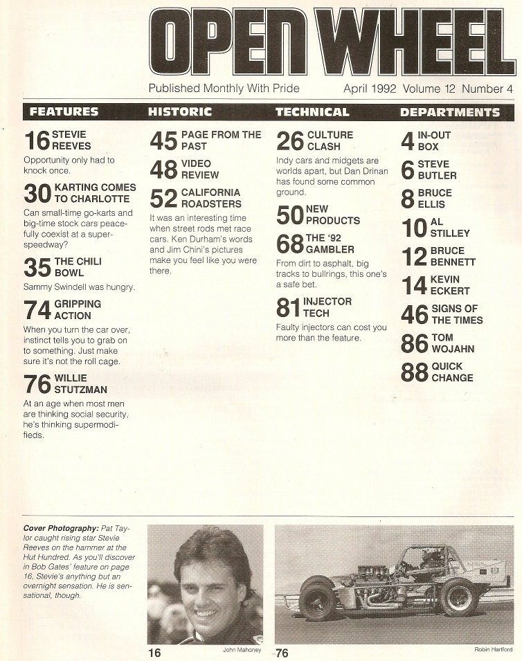 Reviews OPEN WHEEL 1992 APR - STEVIE REEVES, S SWINDELL, CALIFORNIA ROADSTERS