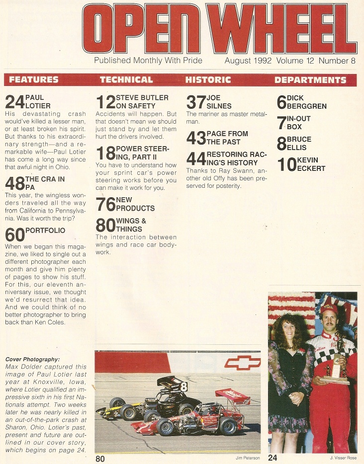 Reviews OPEN WHEEL 1992 AUG - PAUL LOTIER, JOE SILNES SPECIAL, RAY SWANN SPRINT CAR