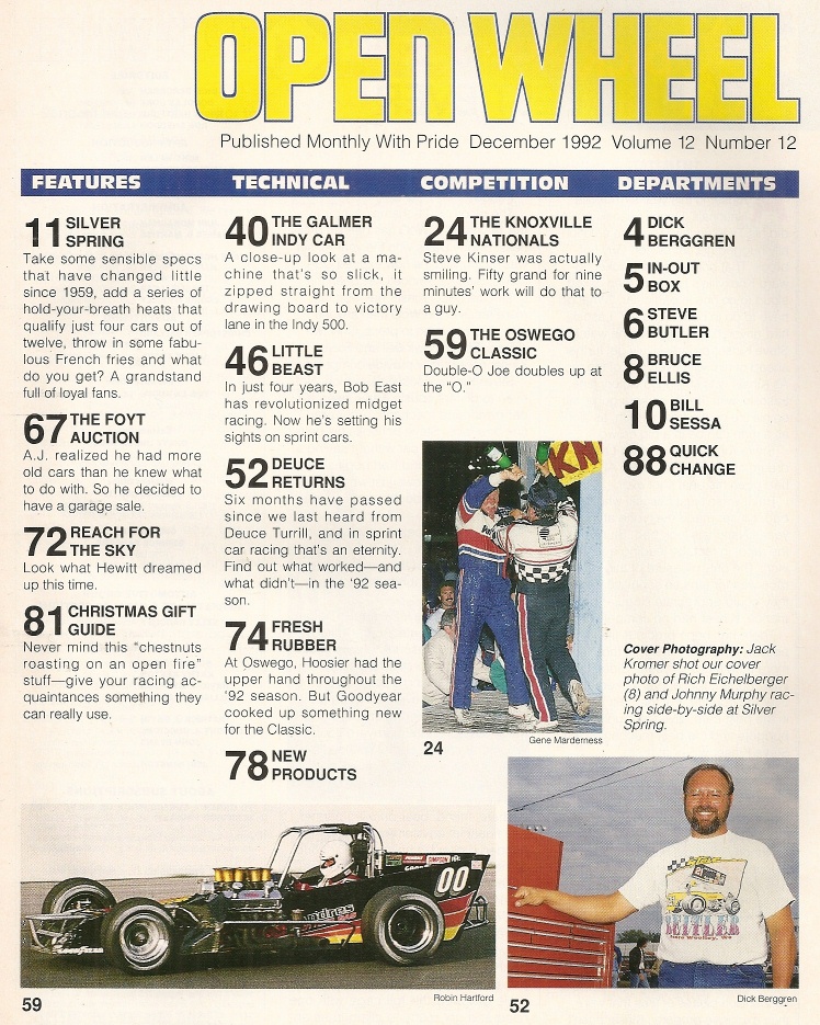 Reviews OPEN WHEEL 1992 DEC - FOYT AUCTION, GALMER G92 INDY CAR, BOB EAST, JOE GOSEK