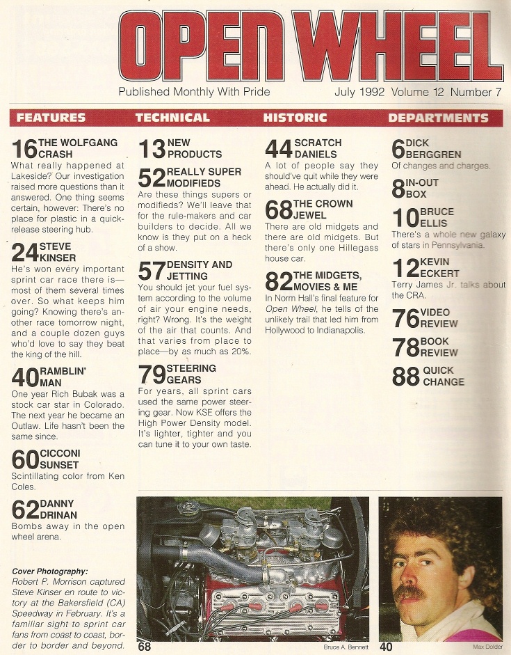 Reviews OPEN WHEEL 1992 JULY - STEVE KINSER SPECIAL, WOLFGANG, RICH BUBAK, D DRINAN