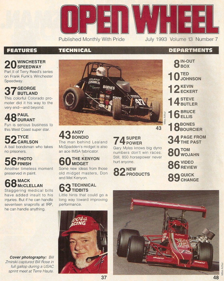 Reviews OPEN WHEEL 1993 JULY - WINCHESTER SPEEDWAY, GEORGE BUTLER, P DURANT, TYCE