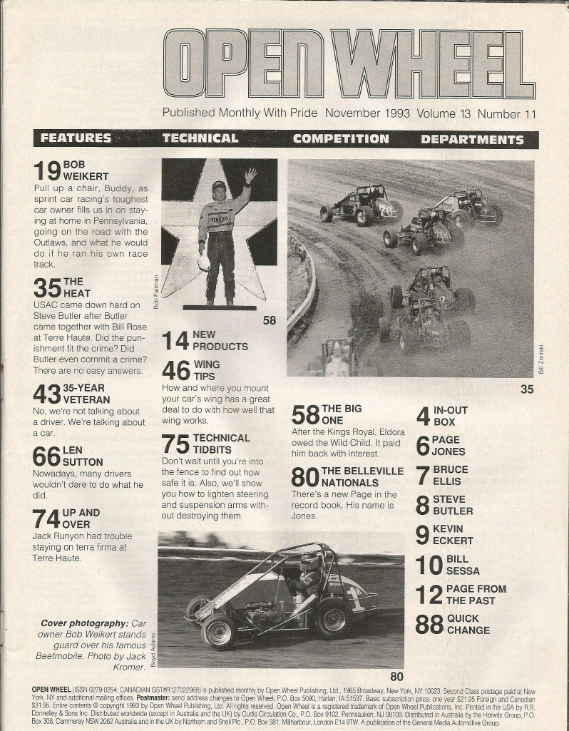 Reviews OPEN WHEEL 1993 NOV - WEIKERT, SUTTON, BELLEVILLE NATS, WINGS, BUTLER- ROSE
