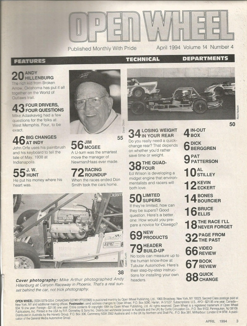 Reviews OPEN WHEEL 1994 APR - HILLENBURG, MCGEE, QUAD-FOUR, HEADER BUILD-UP