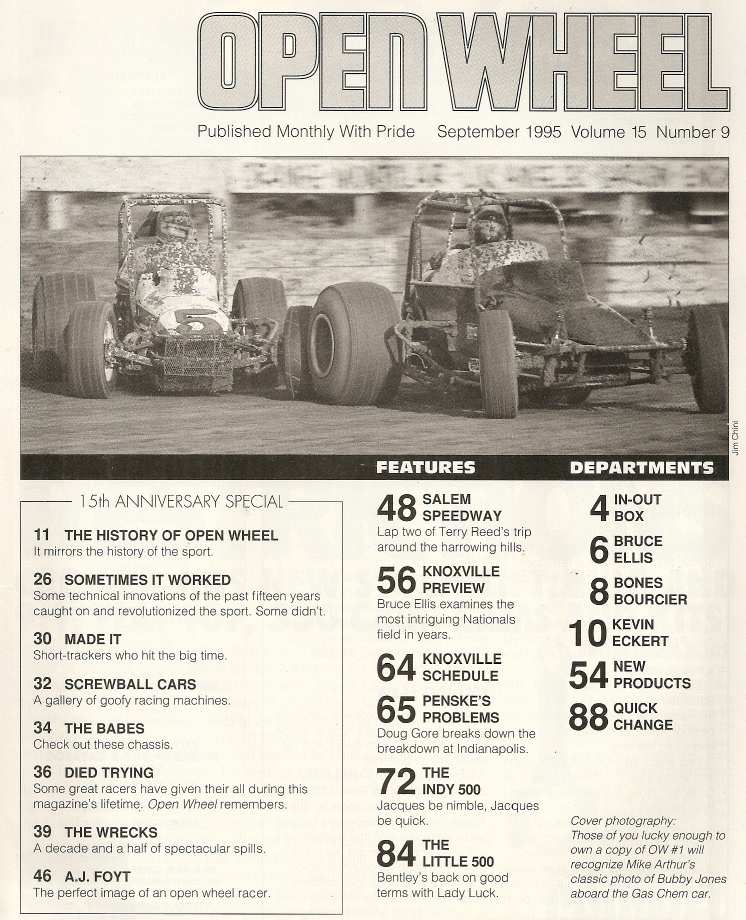 Reviews OPEN WHEEL 1995 SEPT - 15th ANNIVERSARY ISSUE, SALEM SPEEDWAY, AJ, INDY 500