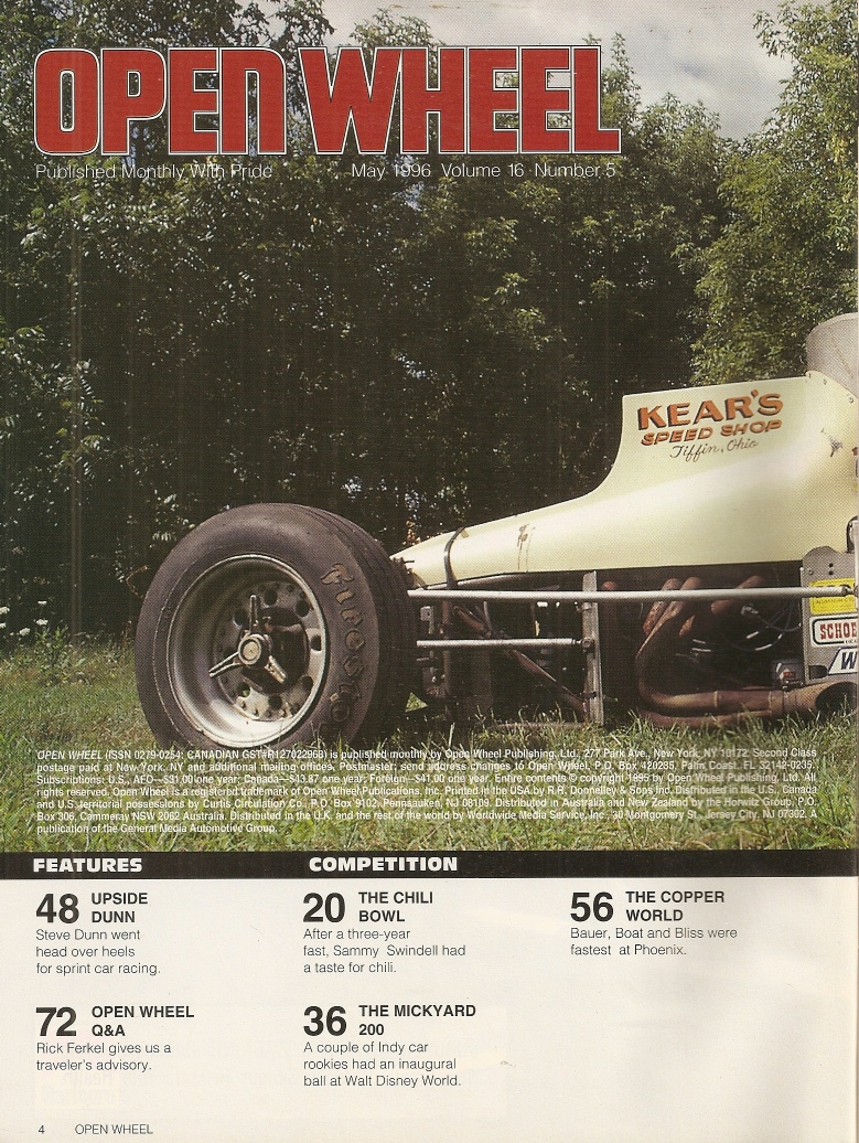 Reviews OPEN WHEEL 1996 MAY - STEVE DUNN, SAMMY SWINDELL, STANTON & HANNAGAN