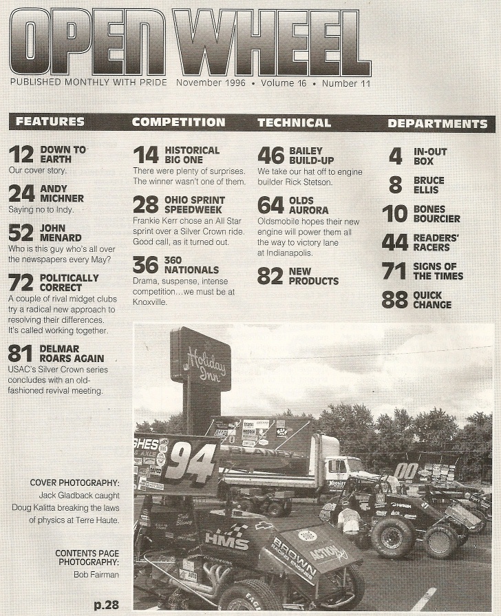 Reviews OPEN WHEEL 1996 NOV - OLDS AURORA INDY MILL, FRANKIE KERR, RICK STETSON