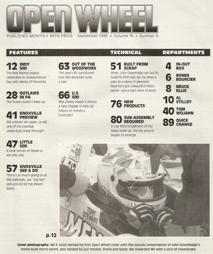 Reviews OPEN WHEEL 1996 SEPT - INDY 500, JIMMY VASSER, JOHN GREENHALGH, Wlm GROVE
