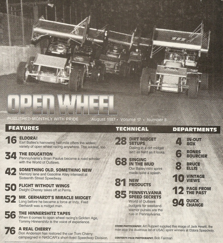 Reviews OPEN WHEEL 1997 AUG - B PAULUS, 16TH St SPEEDWAY, HINNERSHITZ, CHERRY’ RIDE