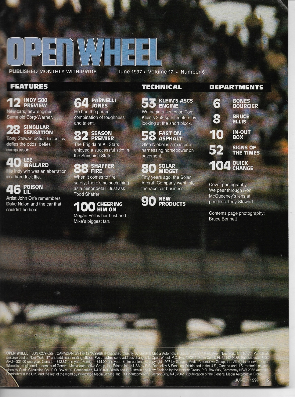 Reviews OPEN WHEEL 1997 JUNE - TONY STEWART, PARNELLI JONES, GLEN NIEBEL