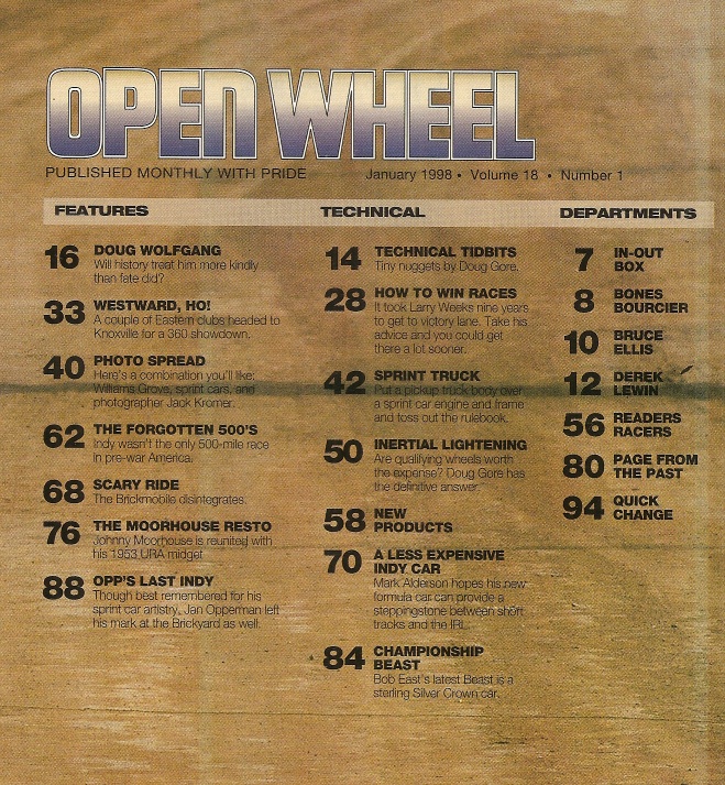 Reviews OPEN WHEEL 1998 JAN - WOLFGANG, OTHER PRE-WAR 500 MILE RACES, MOORHOUSE