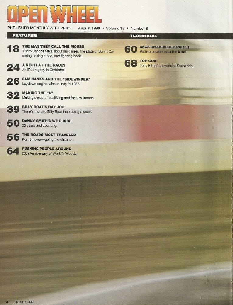Reviews OPEN WHEEL 1999 AUG - KENNY JACOBS, BILLY BOAT, DANNY SMITH, RON SMOKER