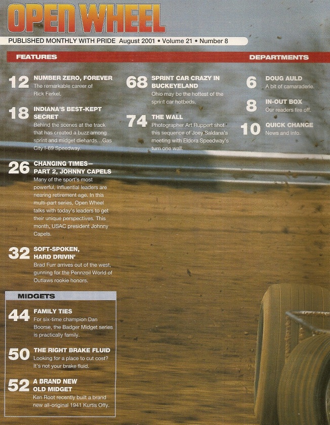 Reviews OPEN WHEEL 2001 AUG - RICK FERKEL, GAS CITY I-69, BRAD FURR, SALDANA vs. WALL