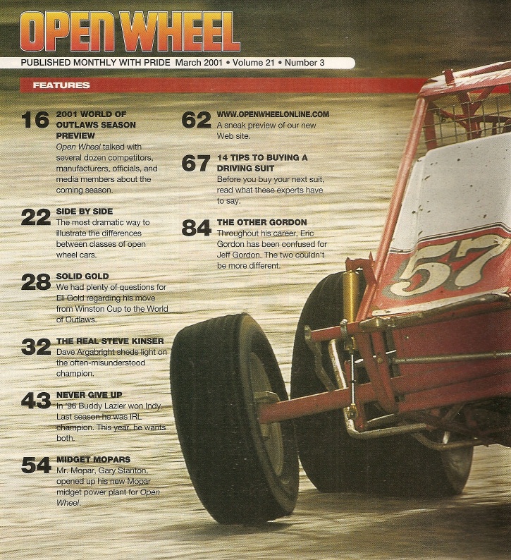 Reviews OPEN WHEEL 2001 MAR - STEVE KINSER Spcl, MIDGET MOPAR MILLS, BUDDY LAZIER