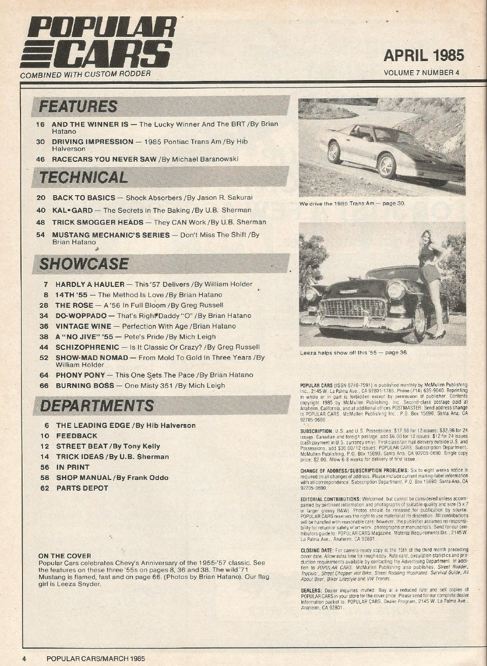 Reviews POPULAR CARS 1985 APRIL, - '71 MUSTANG, HOW-TO 5 SPEED FOR MUSTANG, PONTIAC