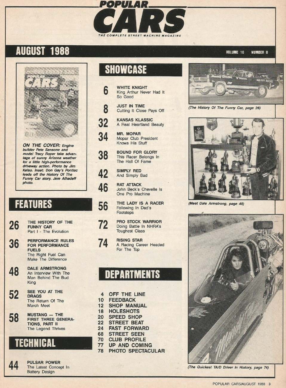 Reviews POPULAR CARS 1988 AUG - FUNNY CAR HIST, DALE ARMSTRONG, 03 MEET