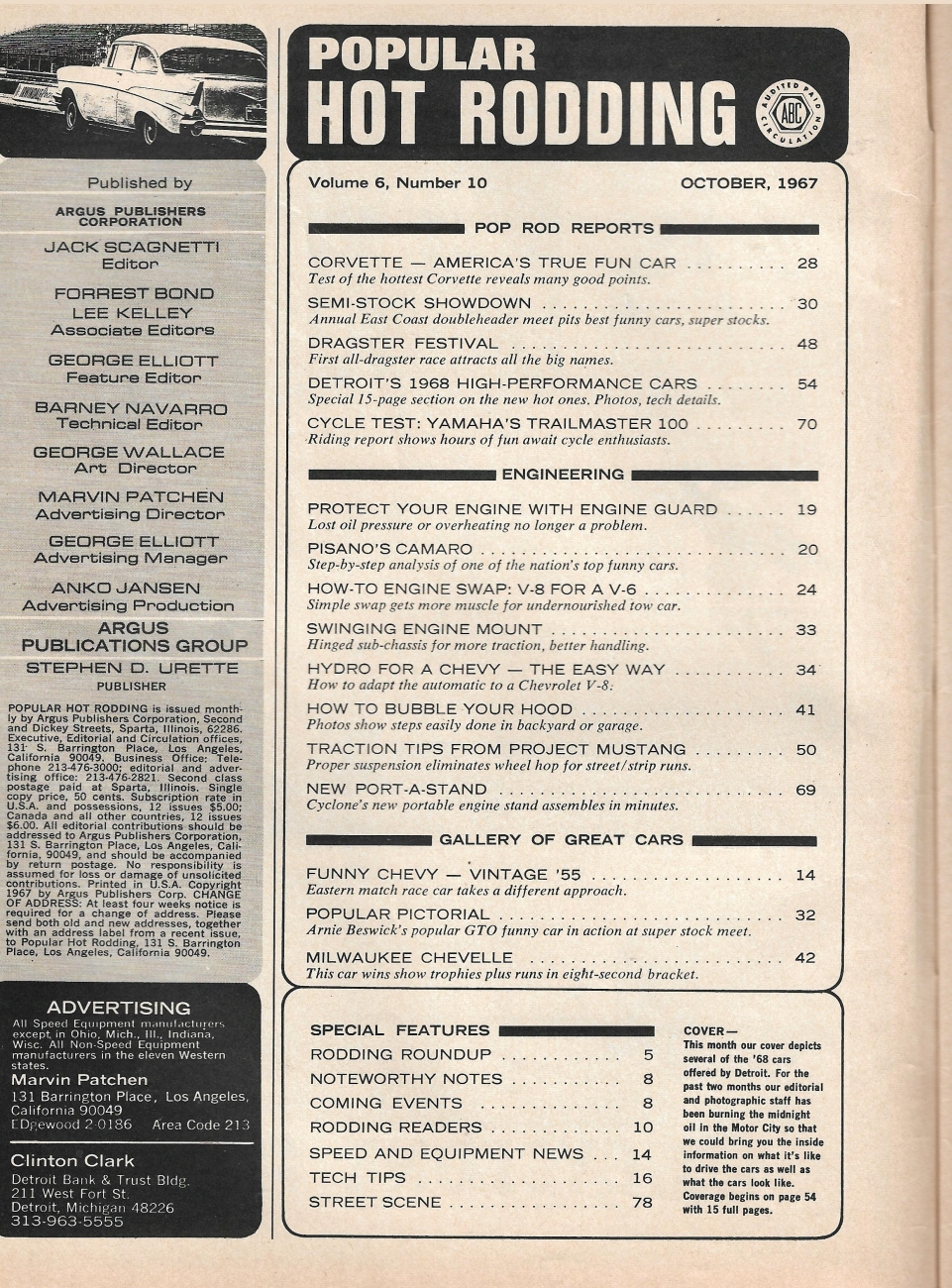 Reviews POPULAR HOT RODDING 1967 OCT - L71 VETTE TEST, LOINS ALL RAIL EVENT, NEW CARS