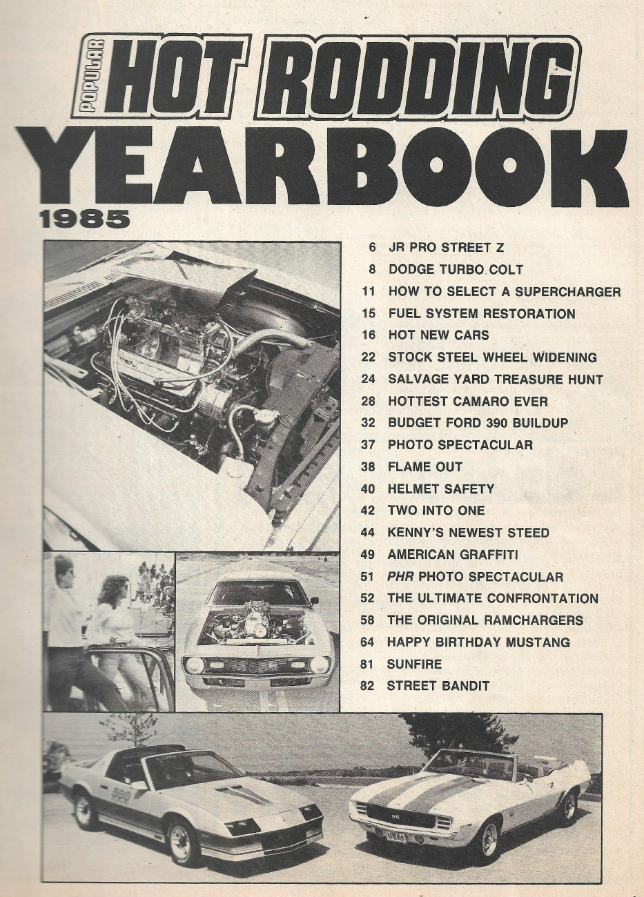 Reviews POPULAR HOT RODDING YEARBOOK 1985 - FORD 390 BUDGET BUILD, HOTTEST CAMARO, COLT