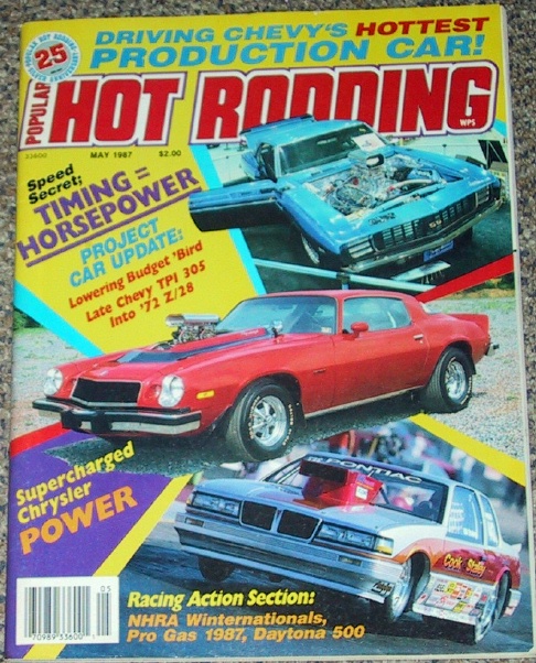 HOT RODDING 1987 MAY - L88 VETTE, DICK LANDY This issue covers the following topics: 1) A look at Pro Gas racing 2) Engine science at Daytona 3) Aerodynamics at Daytona 4) A sweet Pro Stock all Pontiac Grand Am 5) Optimizing engine timing 6) Bell Super Tech Trans Am lowering kit installed 7) A long look at the L88 Vette 8) Coverage of the NHRA Winternationals 9) Billet crank from Pro Crank 10) Why you need a MSD ignition 11) The Dick Landy Big Block Chevy blower kit AND MANY MORE CAR AND TECH FEATURES. |