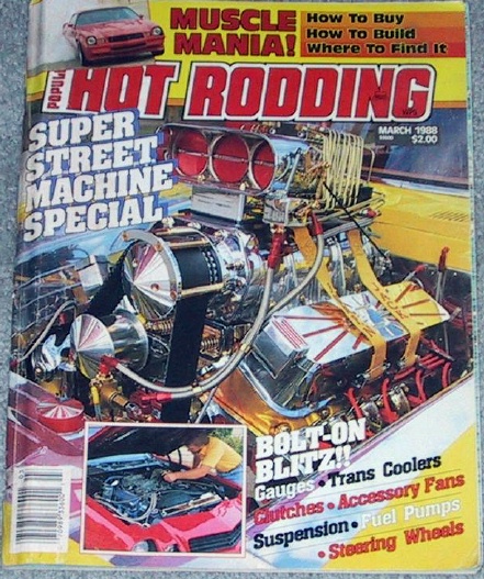 HOT RODDING 1988 MAR - BUICK GNX/GSX, REATTA, SVO This issue covers the following topics: 1) An article on bolt-on items (gauges, electric fans, fuel pumps, tranny cooler, seat belts, steering wheels, and poly control arm bushings 2) A super article on the Buick GNX and GSX 3) A test of the Buick Reatta 4) An 8 second Nova 5) A plain-Jane looking '78 Z/28 with a monster motor hidden within 6) A hairy '67 Rat powered GTO drag car 7) A close look at the Ford SVO V6 8) A series of pictures showing a BIGFOOT flop 9) A really tricked-out 9 second '69 Camaro 10) All about high performance clutches AND MANY MORE CARS AND TECH ARTICLES. |