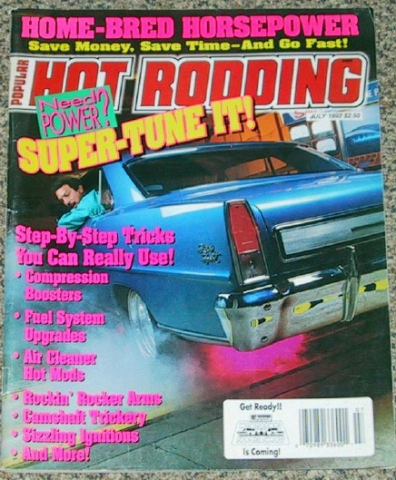 HOT RODDING 1992 JULY CORONET, LT1, FALCON, GTO This issue covers the following topics: 1) A 9 second street Firebird 2) A sweet '70 GTO 3) A GREAT article on how to make NACA ducts on a steel hoods 4) How to super tune your distributor 5) How to get more grunt out of a 305 Chevy 6) A Pro Street but very stock looking '66 Chevy II 7) A test of the new Corvette LT1 8) Big horse power gain from your Ford small block heads 9) A beautiful Hemi powered '56 Dodge Coronet D500 10) A Corvette IRS rear end into a full sized Chevy pickup 11) A '60 Ford Falcon drag car AND MANY MORE TECH AND CAR ARTICLES. |