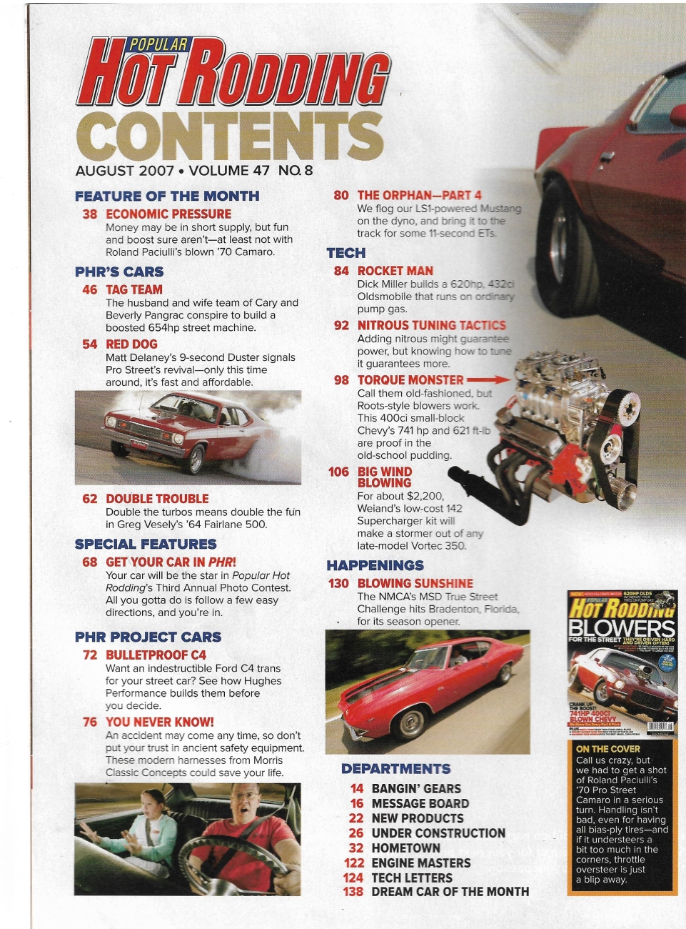 Reviews POPULAR HOT RODDING 2007 AUG - 9 sec DUSTER, TWIN-T '63 FAIRLANE, HOT OLDS BUILT