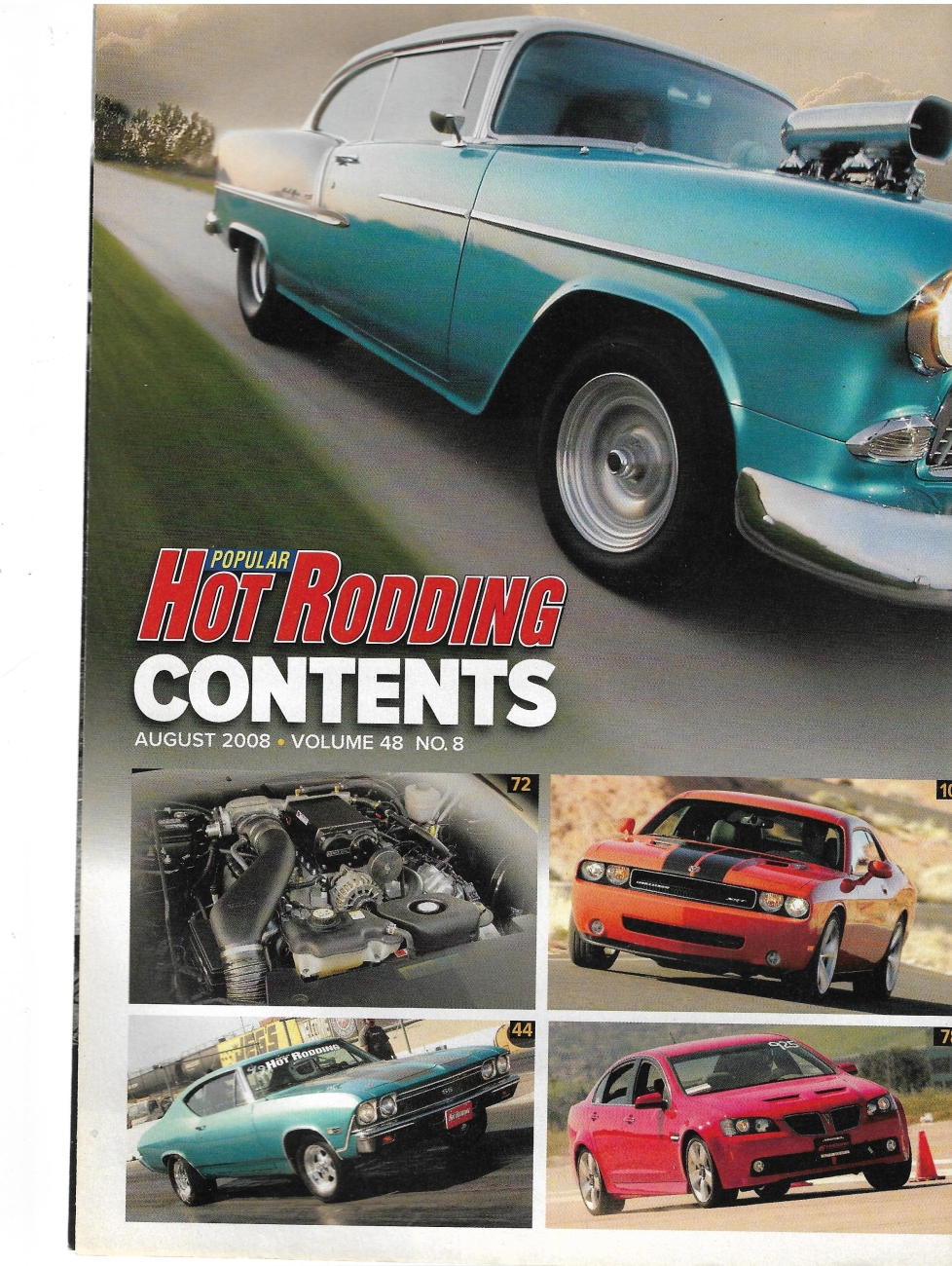 POPULAR HOT RODDING 2008 AUG - SRT8 CHEVELLE TESTED, PRO STREET '55 CHEVY, GTO