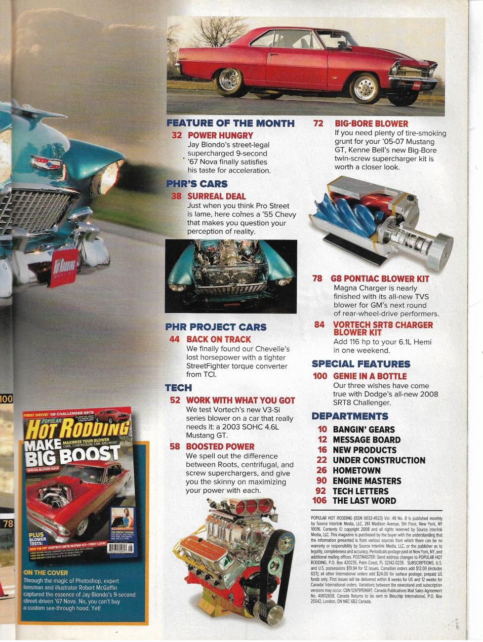 Reviews POPULAR HOT RODDING 2008 AUG - SRT8 CHEVELLE TESTED, PRO STREET '55 CHEVY, GTO
