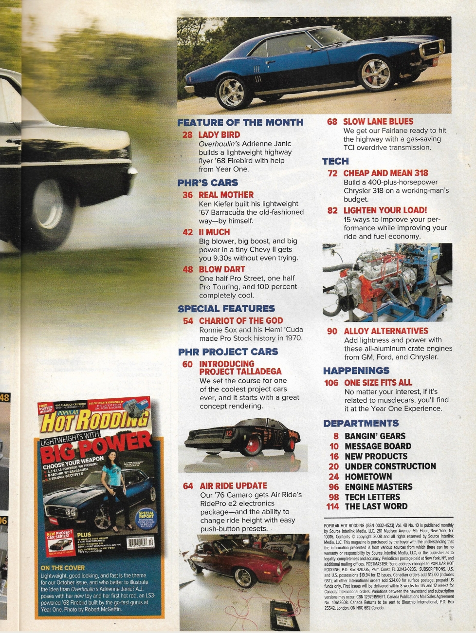 Reviews POPULAR HOT RODDING 2008 OCT - NASCAR LAGUNA, HOW TO LOOSE WEIGHT, SOX HEMI CUDA