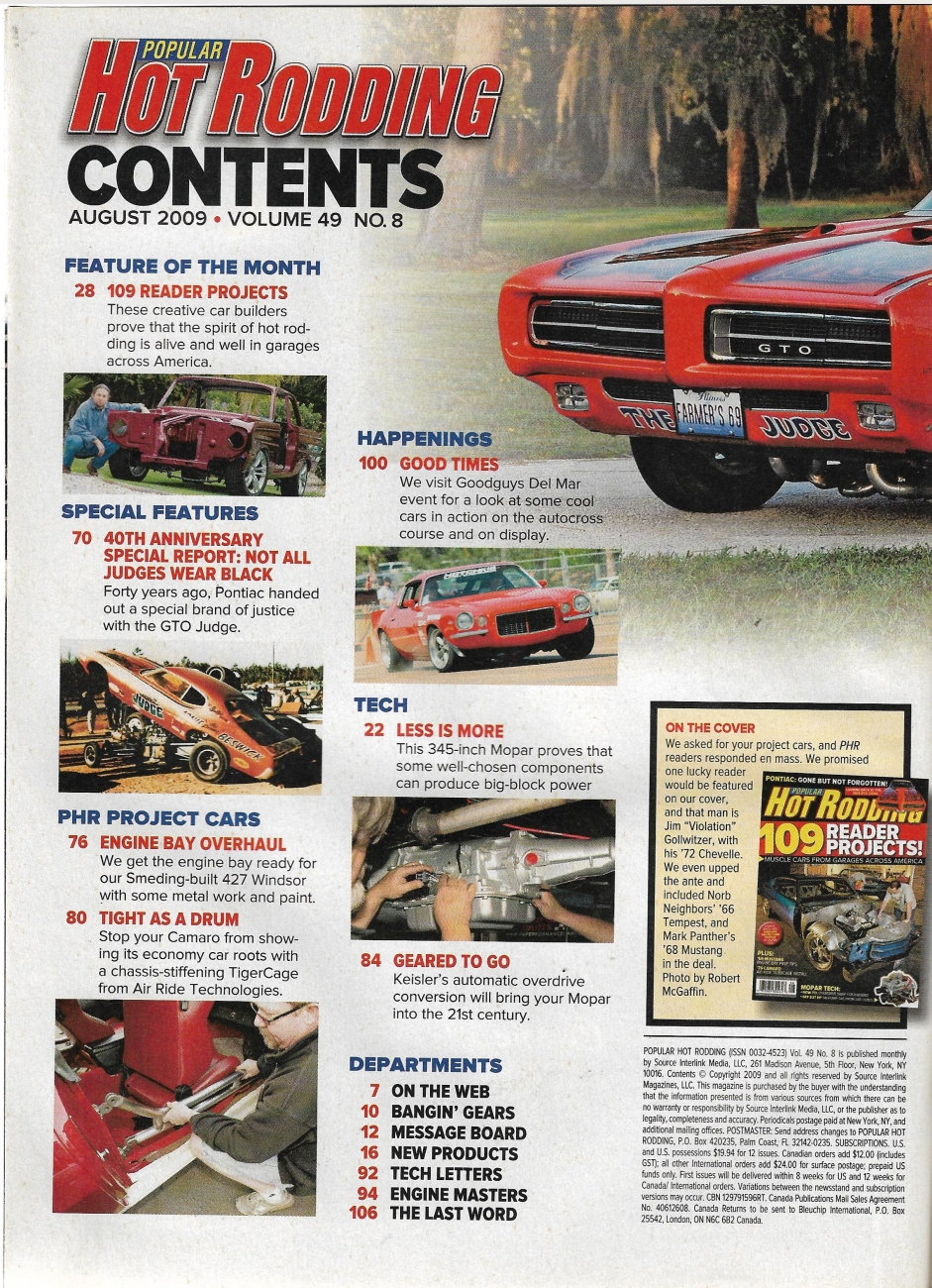 Reviews POPULAR HOT RODDING 2009 AUG - '69 JUDGE, CHEAP MOPAR POWER, KEISLER-MOPAR O.D.