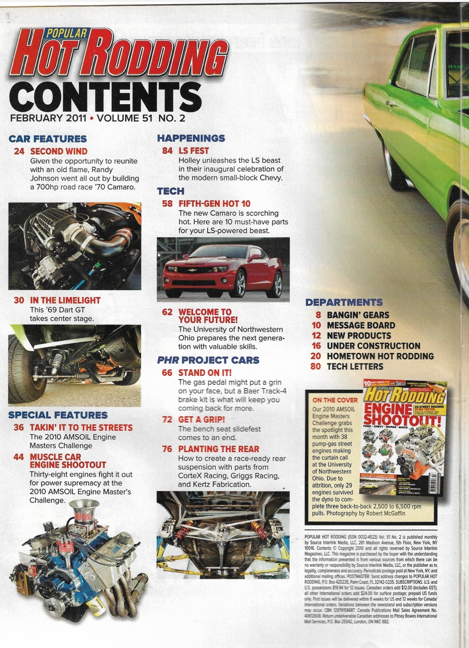 POPULAR HOT RODDING 2011 FEB - NEW CAMARO PARTS, 29 STREET ENGINE DYNO TESTED