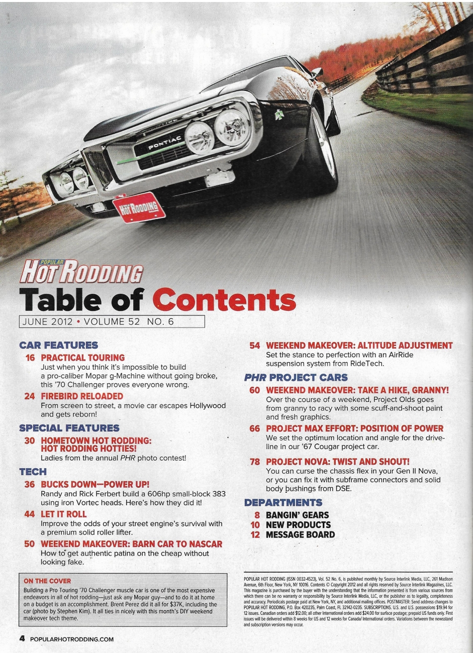 POPULAR HOT RODDING 2012 JUNE - STREET SOLID ROLLER LIFTERS, LADY PHOTOS CONTEST