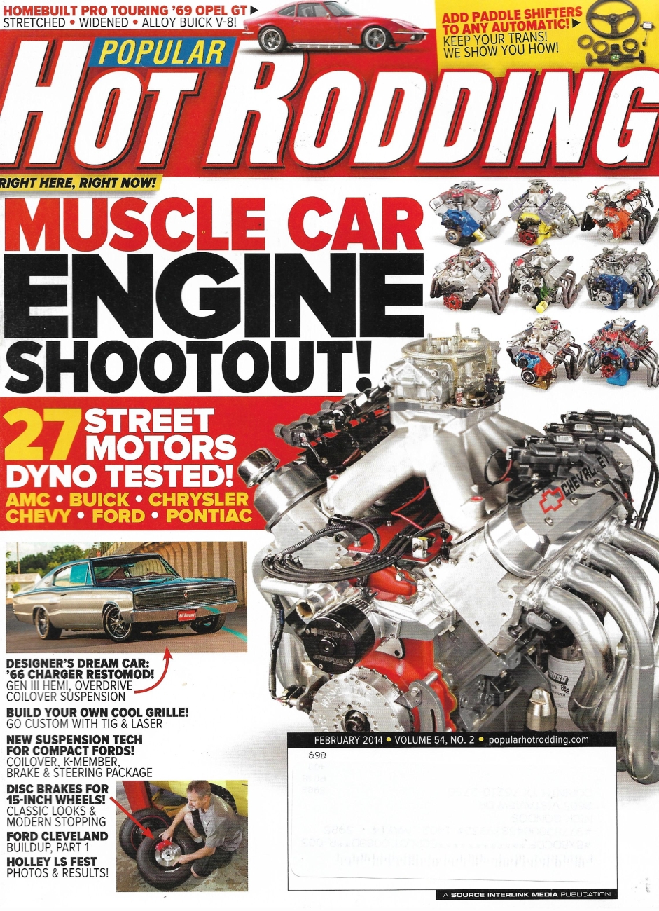 POPULAR HOT RODDING 2014 FEB - PADDLE SHIFTERS, '69 OPEL GT, '66 HEMI CHARGER