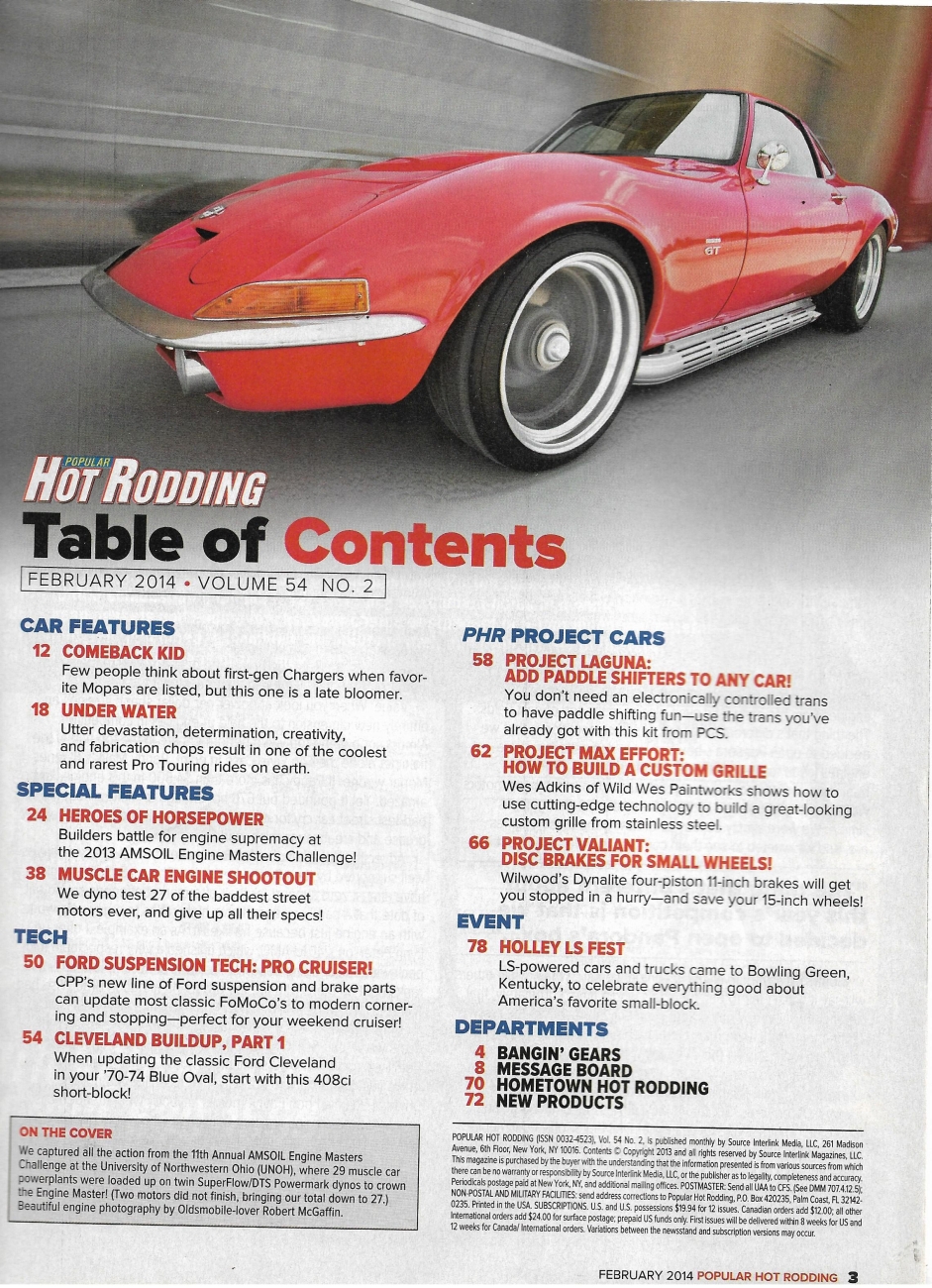 Reviews POPULAR HOT RODDING 2014 FEB - PADDLE SHIFTERS, '69 OPEL GT, '66 HEMI CHARGER