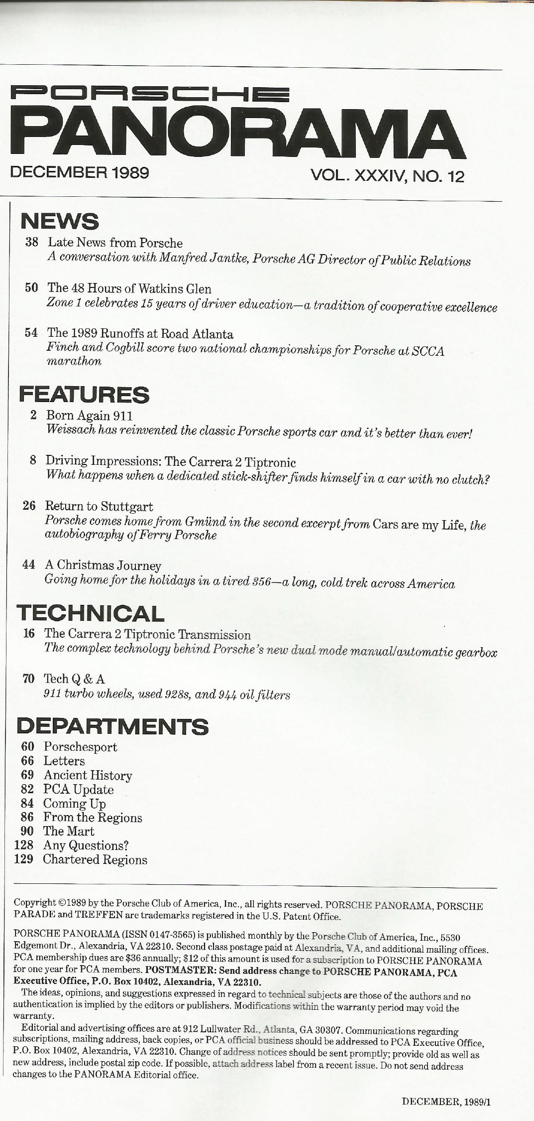 Reviews PORSCHE PANORAMA 1989 DEC - NEW CARRERA 2, TIPTRONIC STUDY, 911 TURBO WHEELS