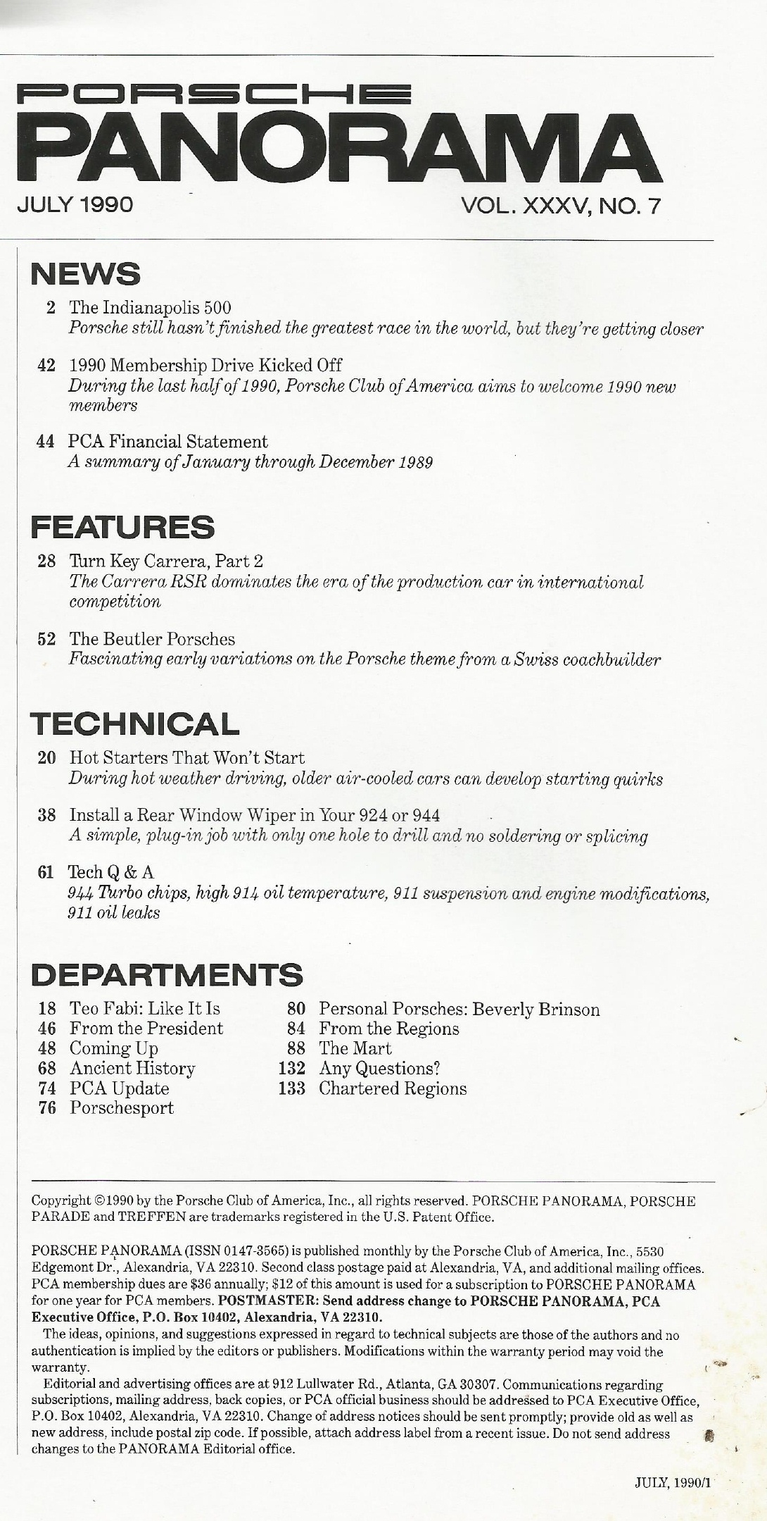 Reviews PORSCHE PANORAMA 1990 JULY - INDY, 924-944 REAR WIPER INSTALL, 944 TURBO CHIPS