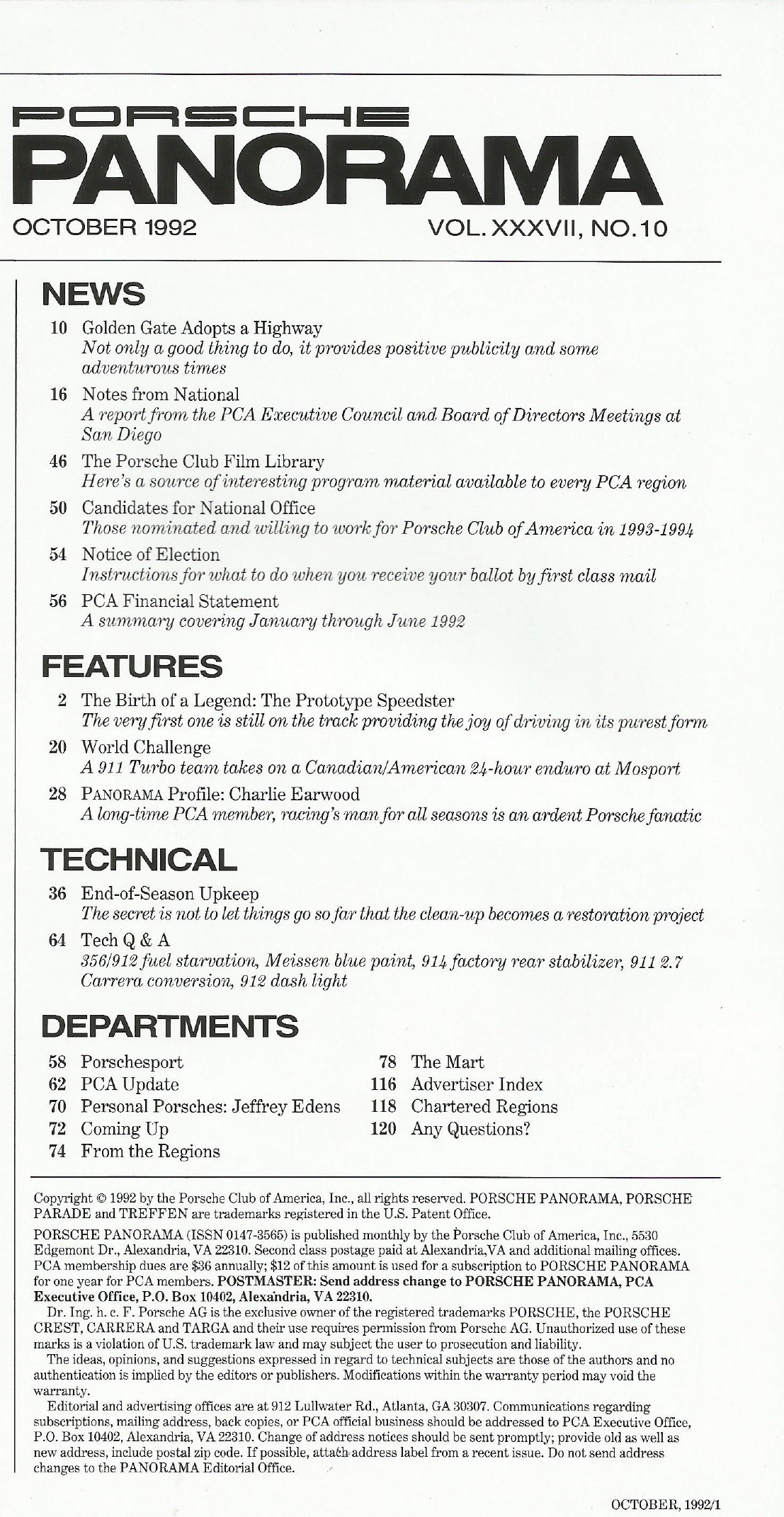 Reviews PORSCHE PANORAMA 1992 OCT - PROTOTYPE 356 SPEEDSTER, CAN-AM MOSPORT