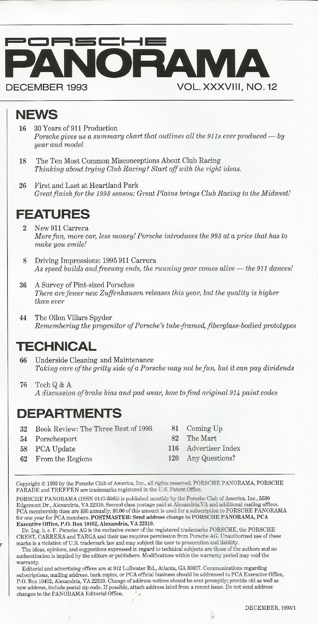 Reviews PORSCHE PANORAMA 1993 DEC - NEW 911 CARRERA, 911 PRODUCTION NUMBERS