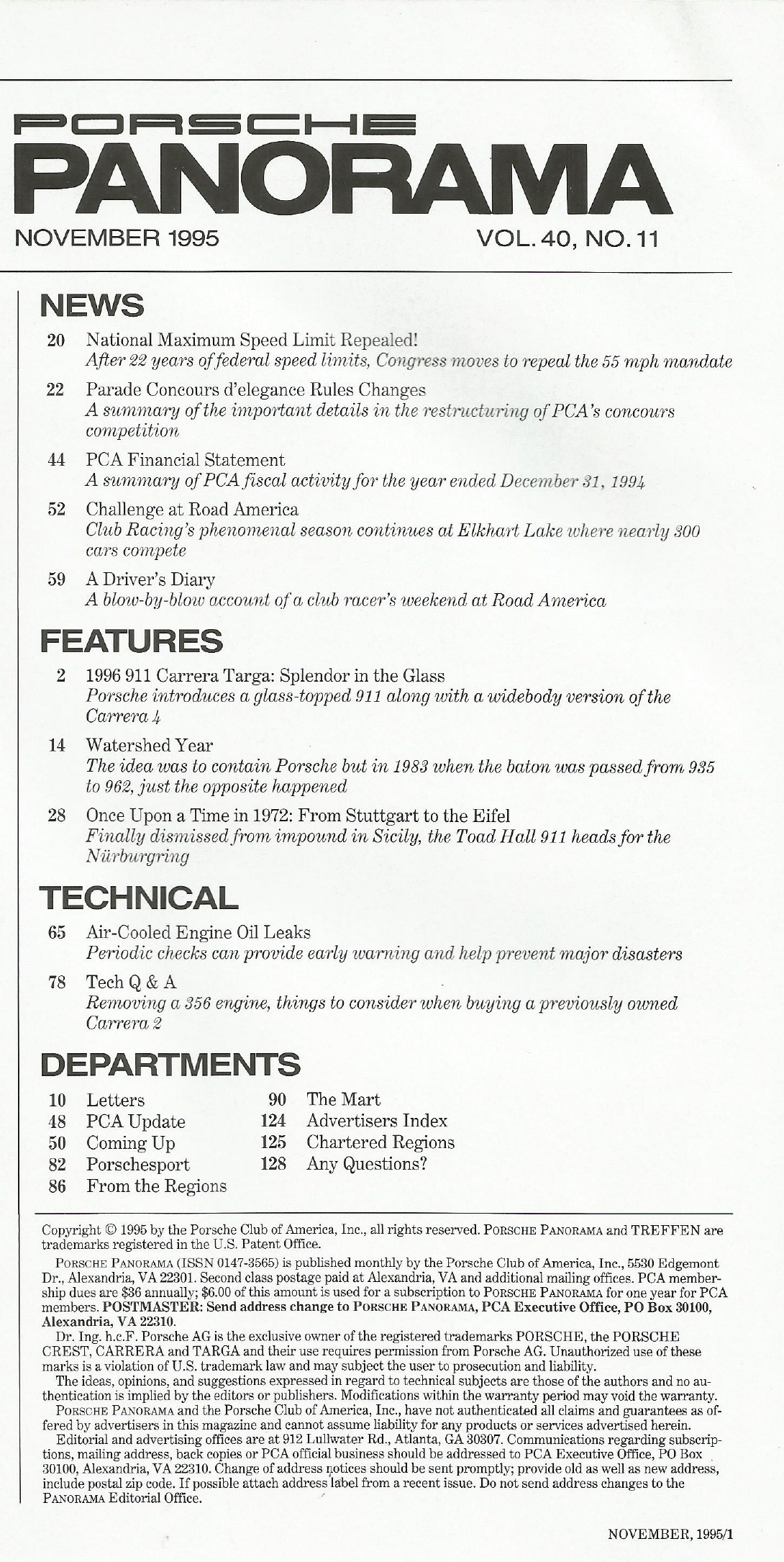 Reviews PORSCHE PANORAMA 1995 NOV - NEW 911 CARRERA TARGA, ROAD AMERICA CHALLENGE