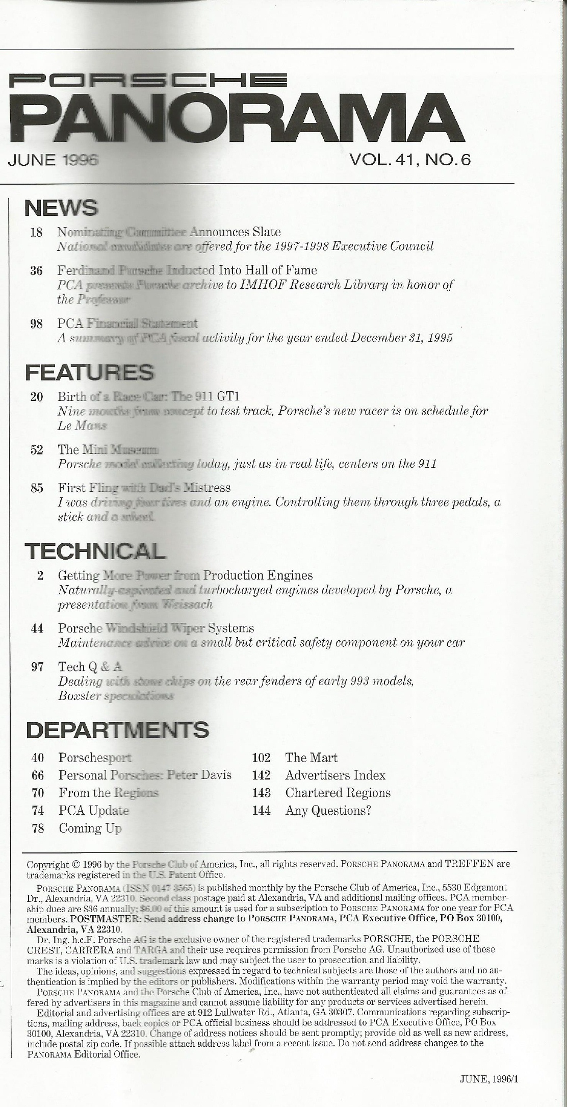 Reviews PORSCHE PANORAMA 1996 JUNE - HORSEPOWER GAINS FROM PRODUCTION ENGINES