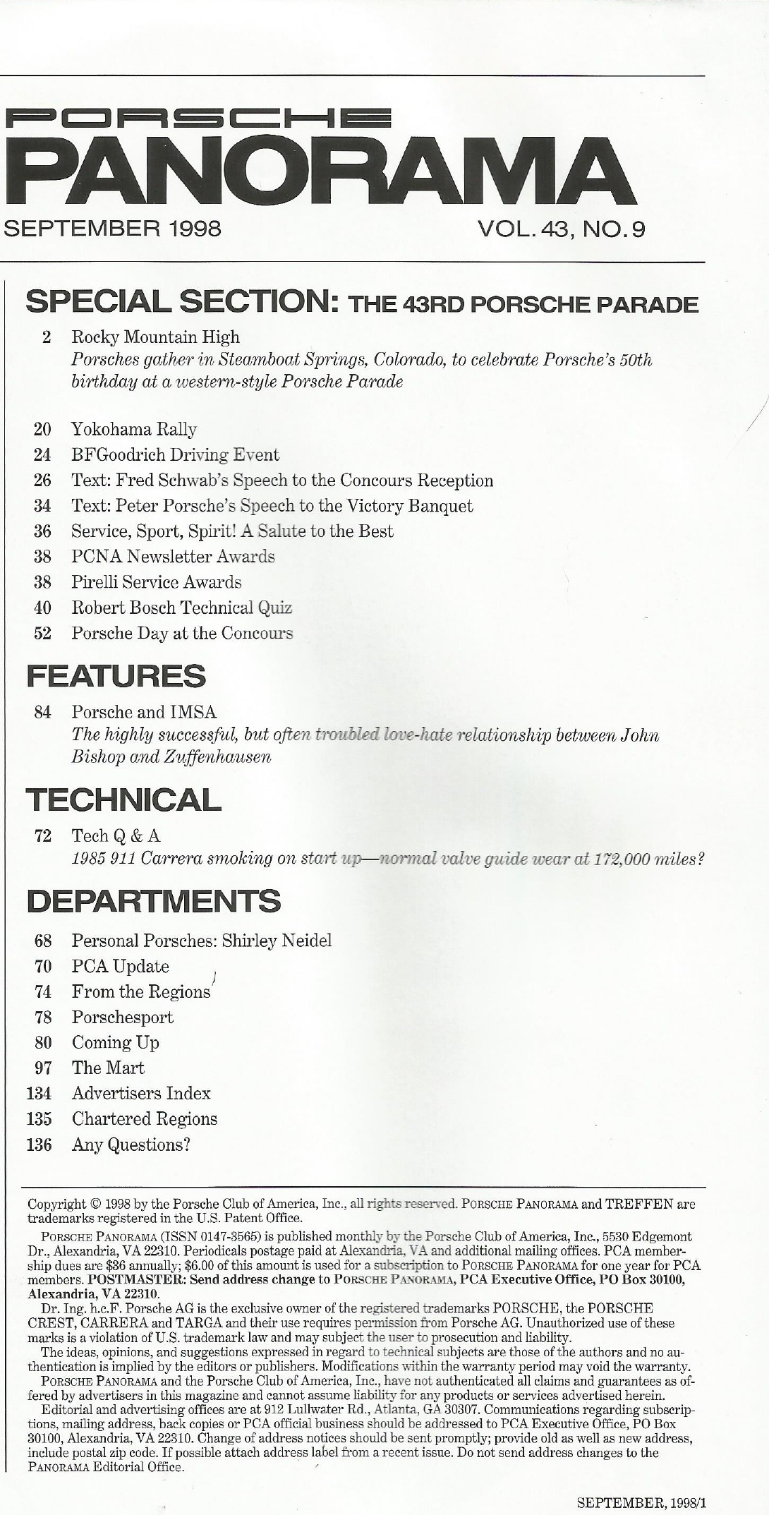 Reviews PORSCHE PANORAMA 1998 SEPT - PORSCHE & IMSA, PORSCHES GATHER AT STEAMBOAT