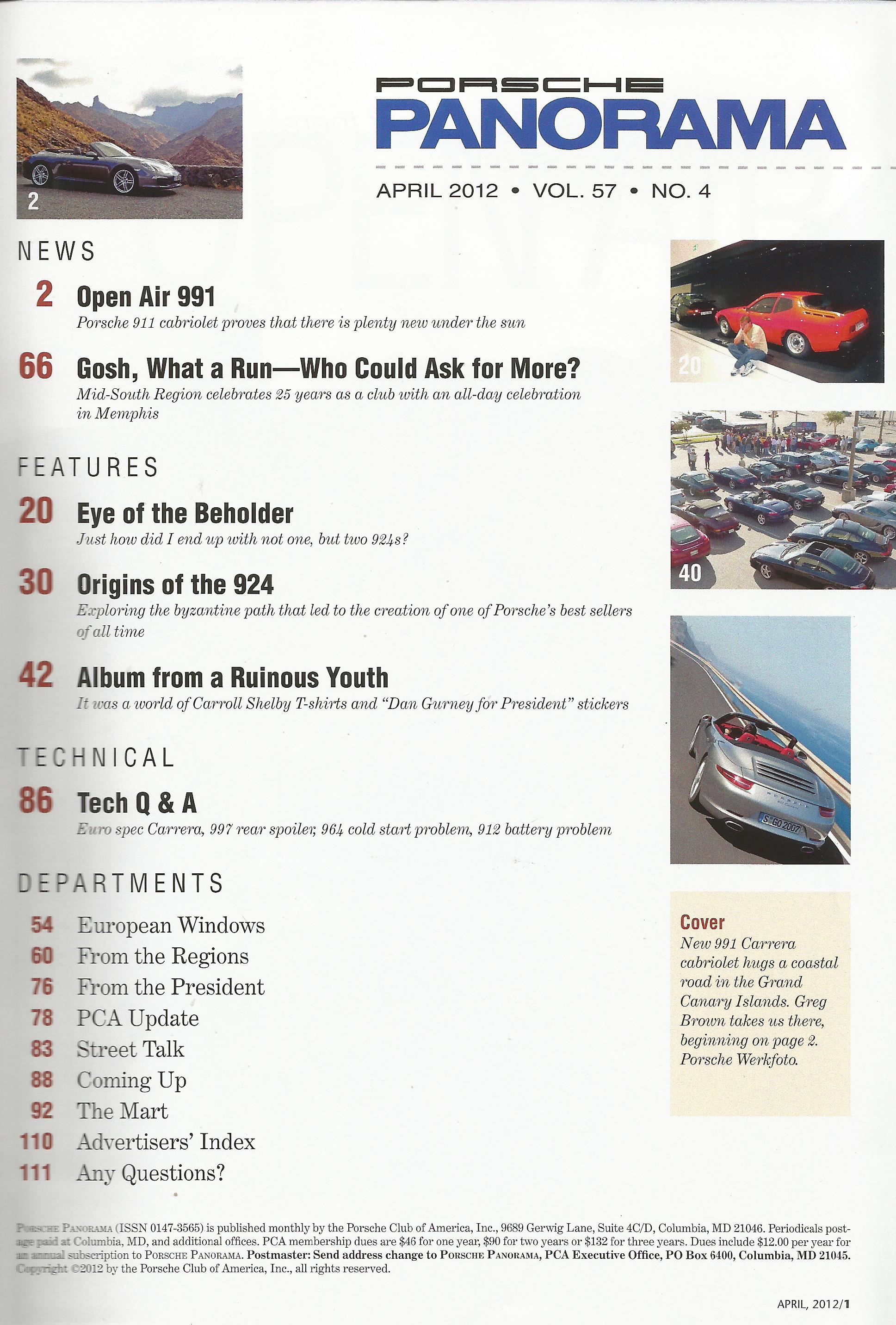 Reviews PORSCHE PANORAMA 2012 APR - 911 CABRIOLET, 924 HISTORY, EURO SPEC CARRERA