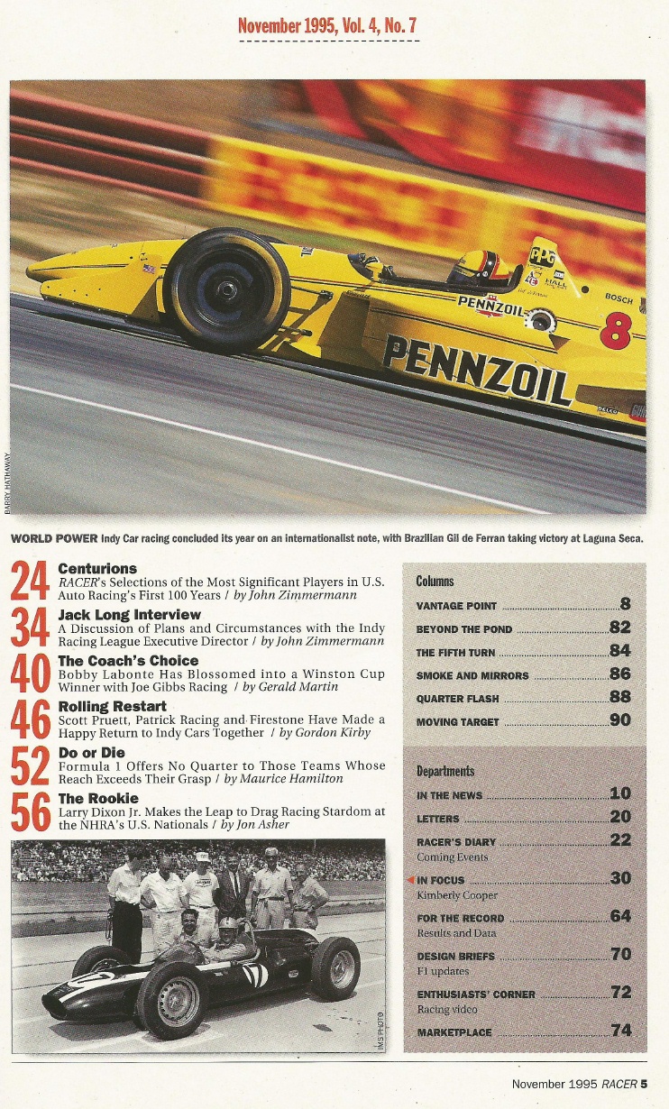 Reviews RACER MAGAZINE 1995 NOV - LABONTE, SCOTT PRUETT, KIMBERLY COOPER, LARRY DIXON