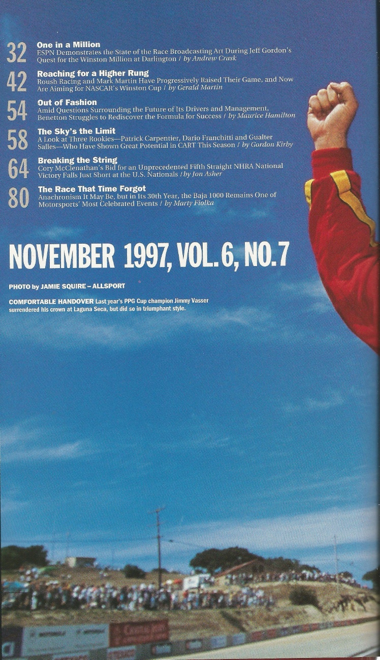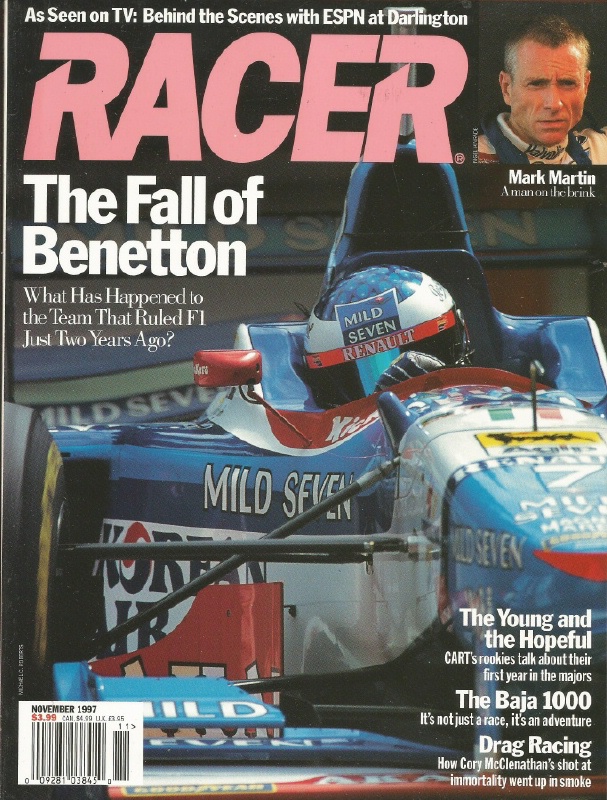 Reviews RACER MAGAZINE 1997 NOV - MARK MARTIN, BAJA, T-BIRD STOCK CAR, ROUSH-MARTIN